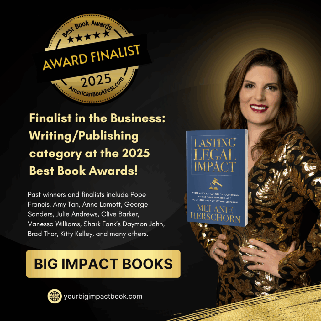 Lasting Legal Impact Named Finalist in the 2025 Best Book Awards My latest book, Lasting Legal Impact: Write a Book That Builds Your Brand, Grows Your Practice, and Positions You As The Trusted Expert, has been named a Finalist in the Business: Writing/Publishing category of the 2025 Best Book Awards, presented by American Book Fest. […]